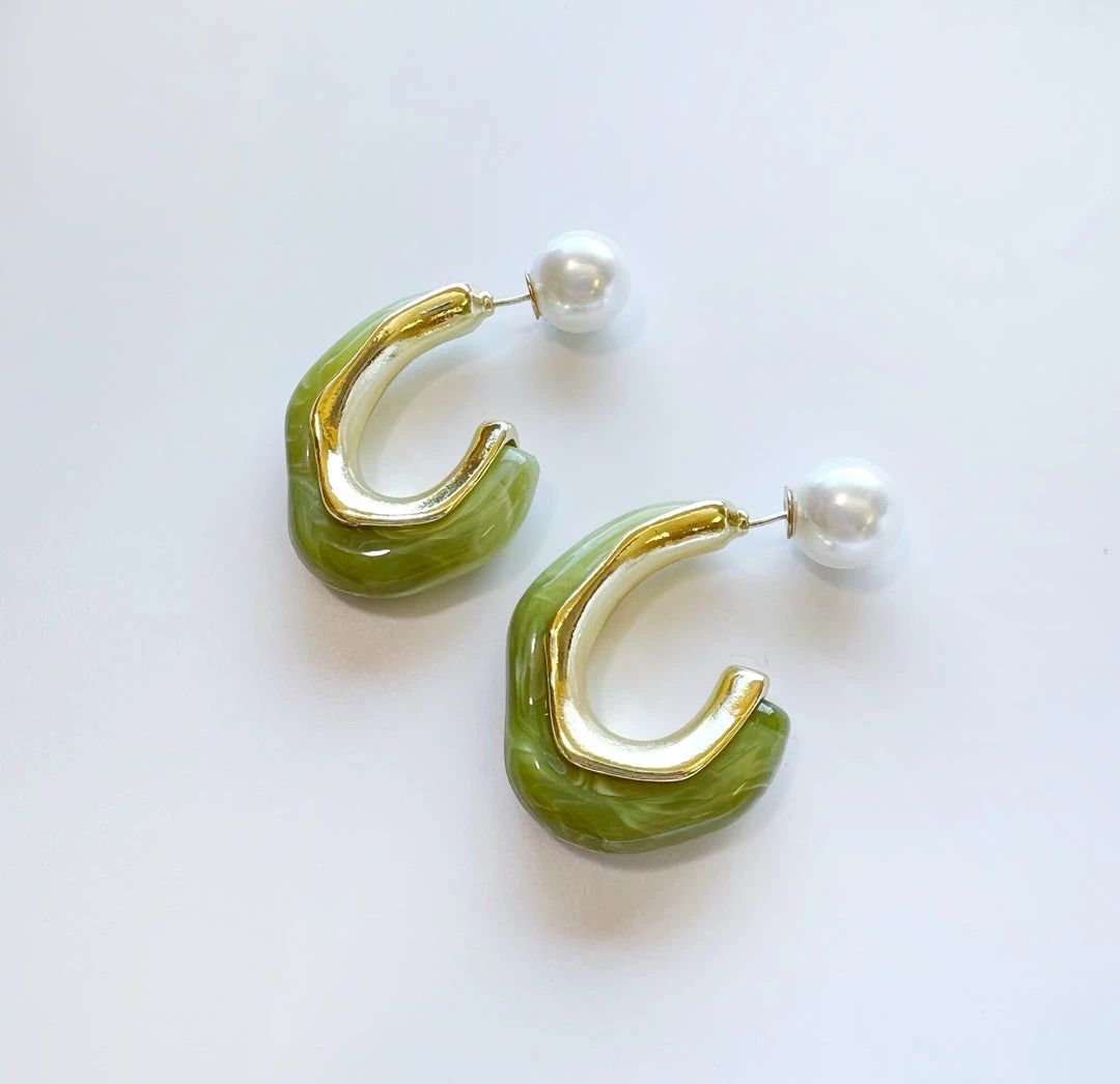 - Green hoop earrings with pearl backsÂ
