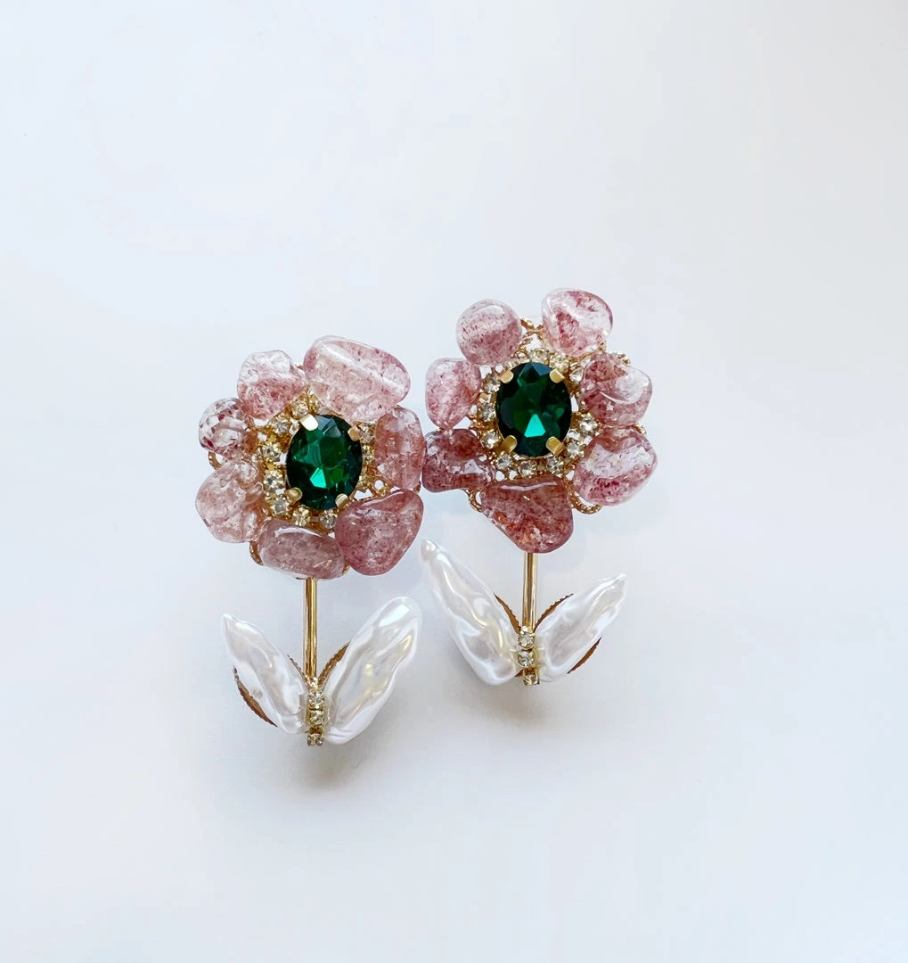 Au Darling Accessories Pink And Green Pearl Flower Earrings