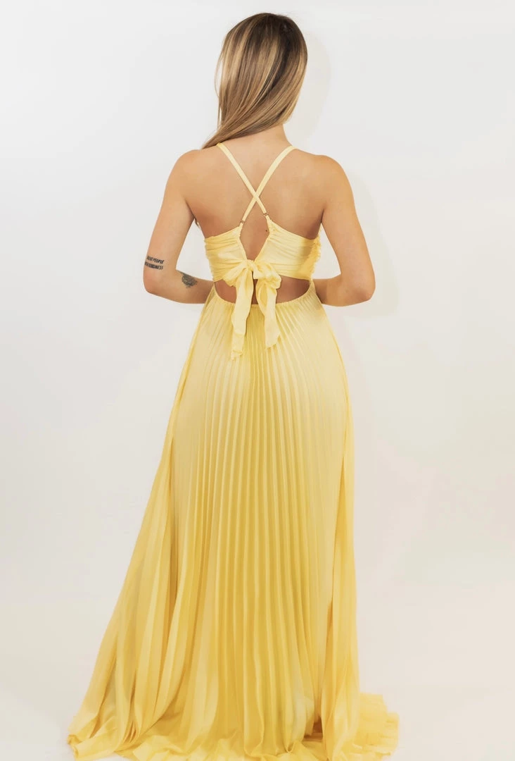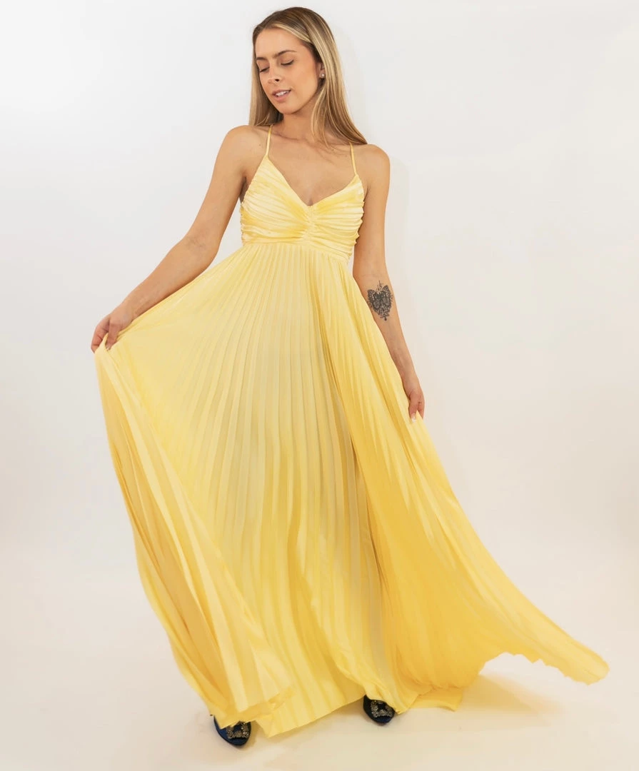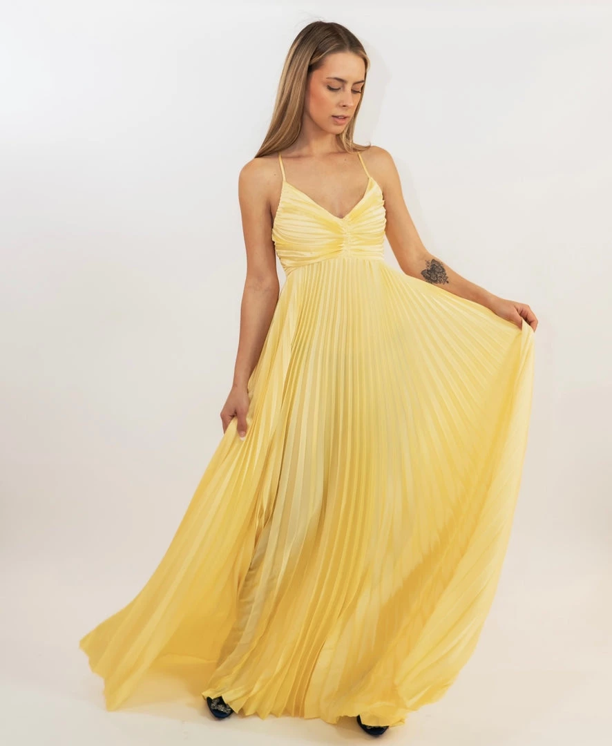 - Stunning yellow pleated gown