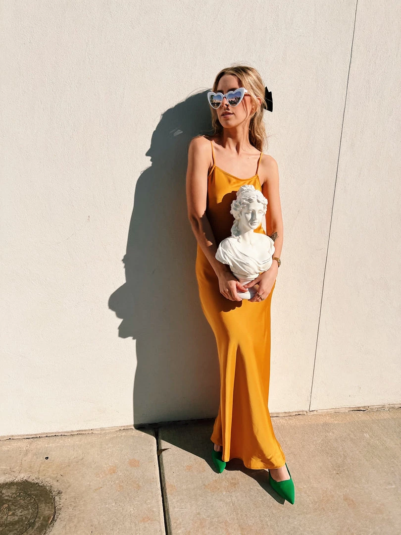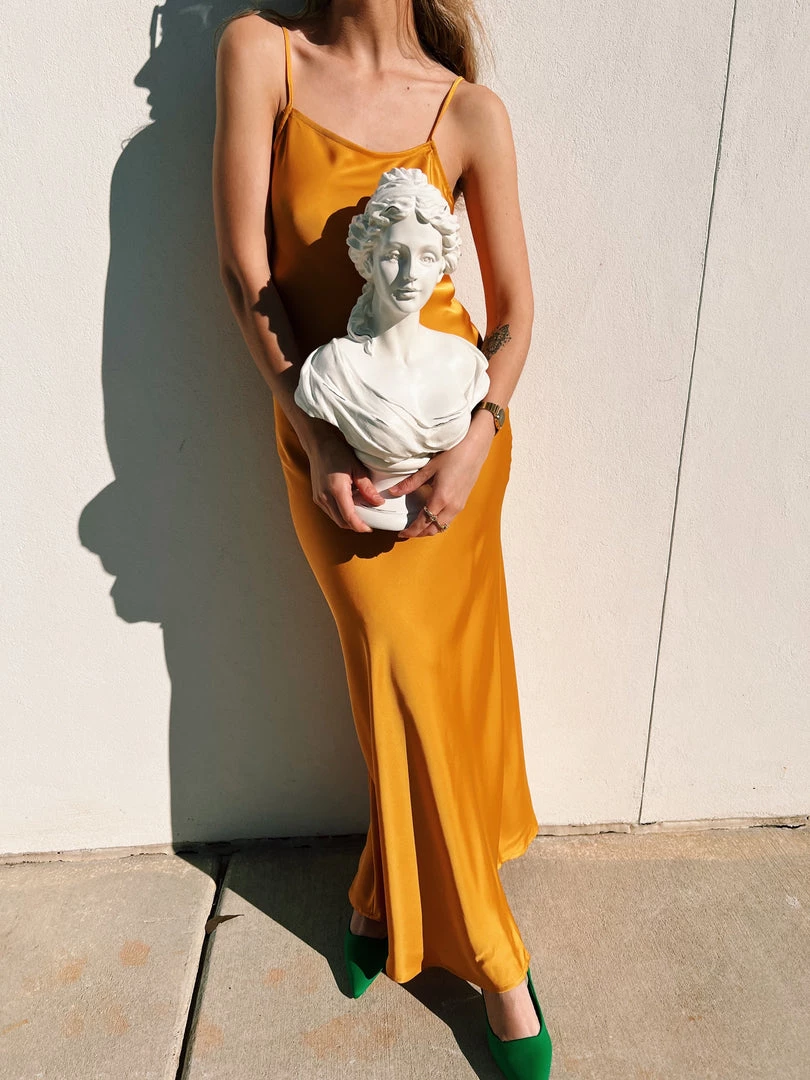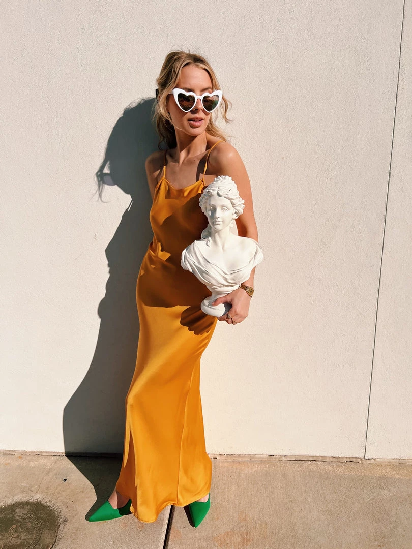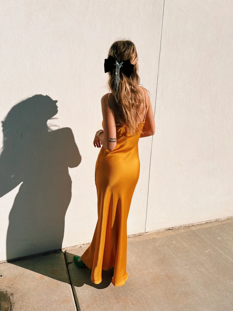 Au Darling Apricot Satin Slip Dress