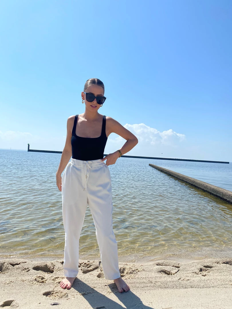 - Black square neck bodysuit