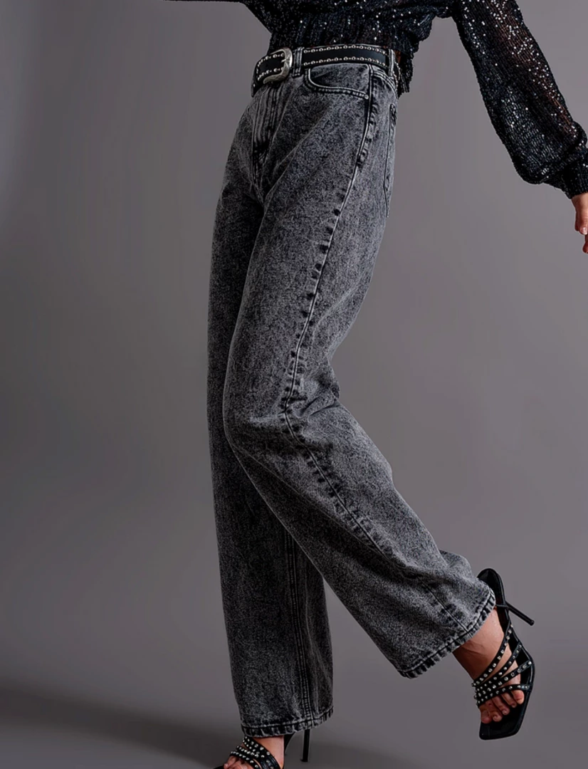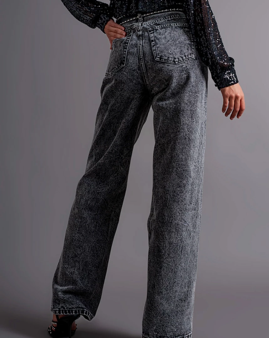 Au Darling Charcoal Straight Cut Mom Jeans Clothing