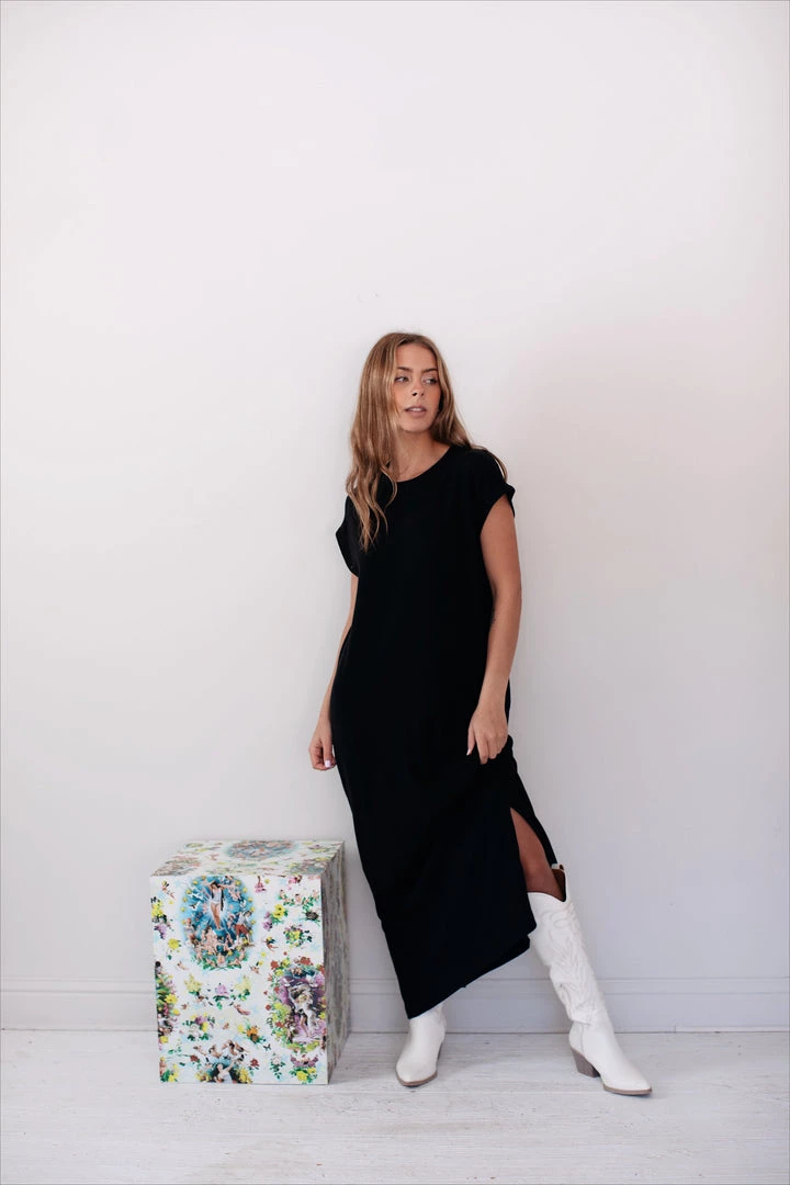 - Black soft tee style maxi dress
