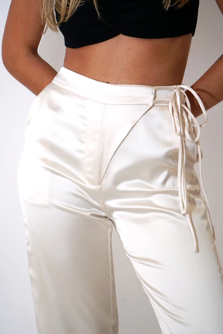 - Zipper and button closure underneath “wrap” feature which then wraps and ties around the waist
