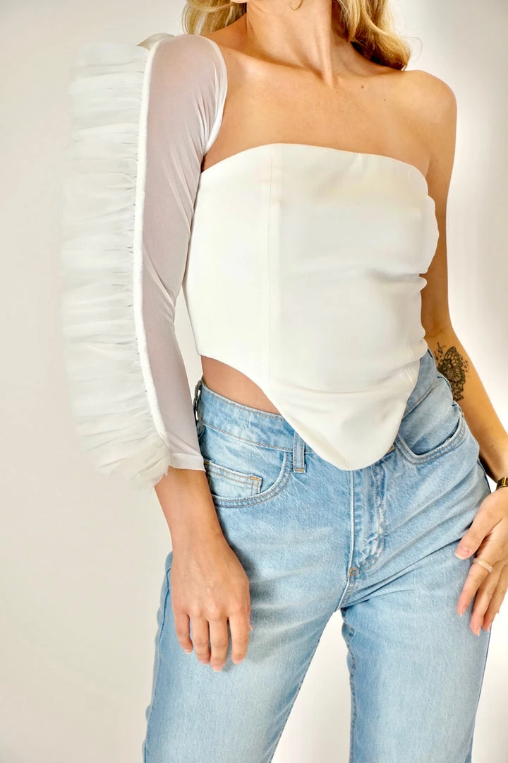 Au Darling Clothing One Shoulder Tulle Sleeve Top