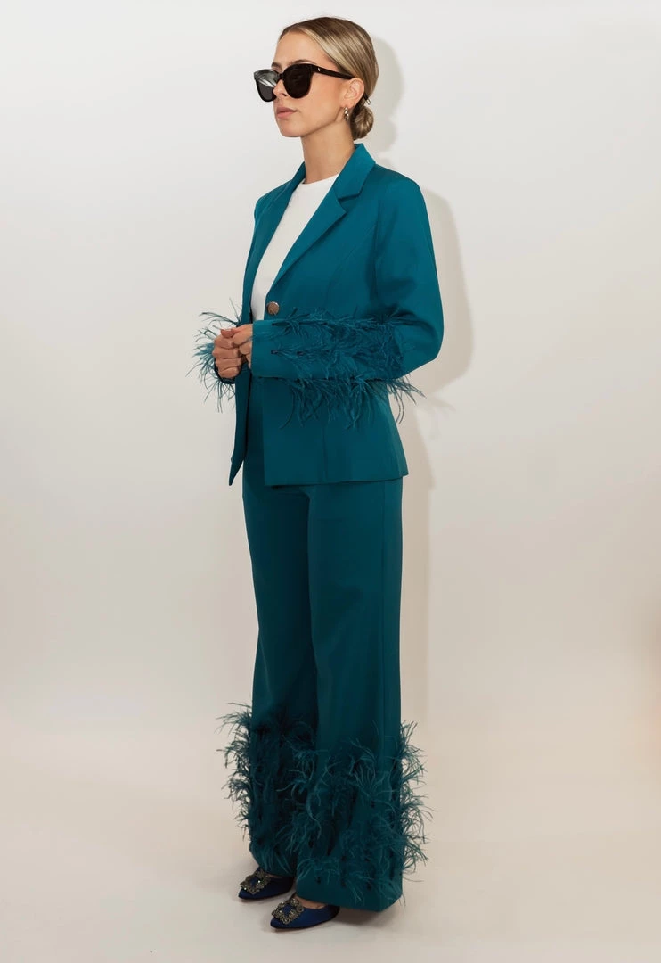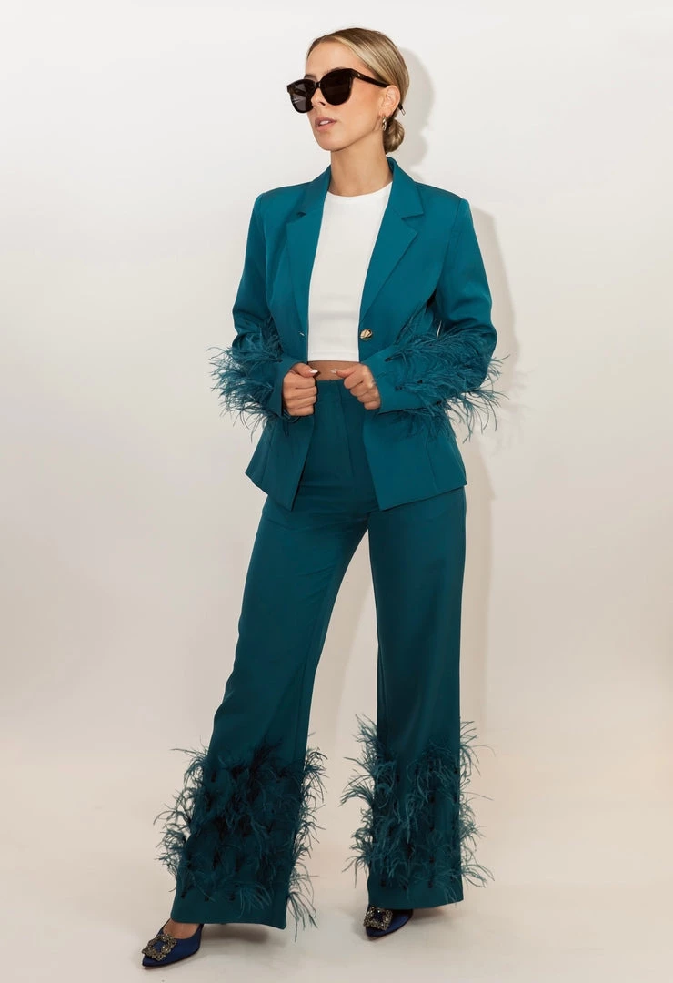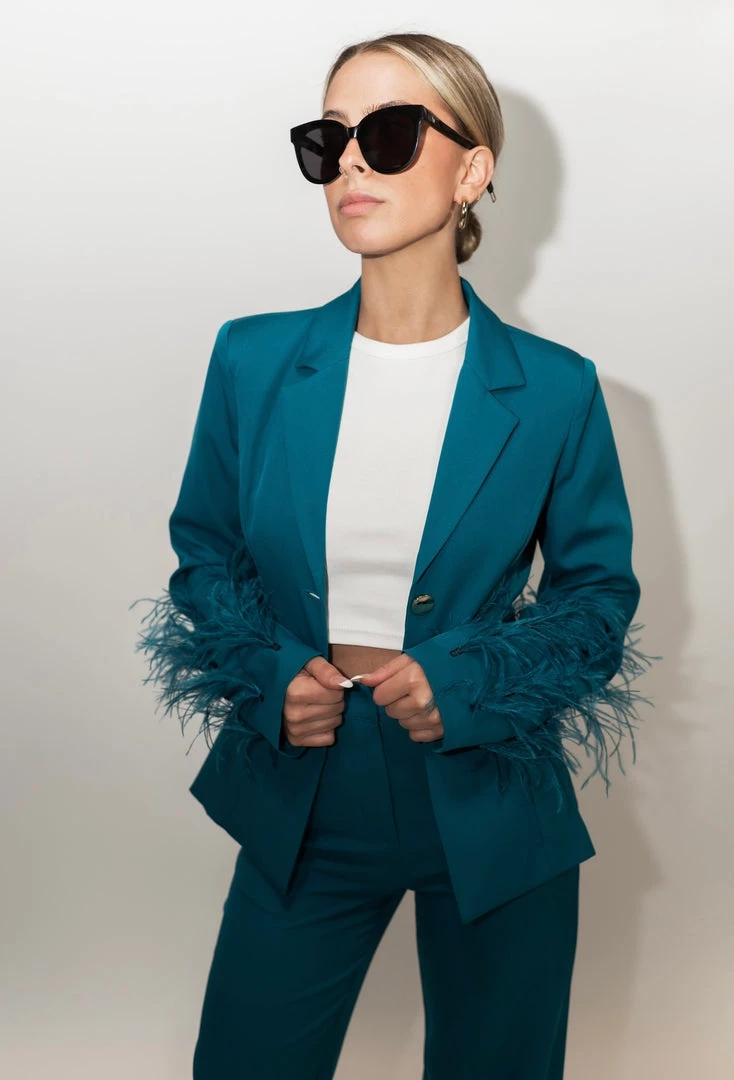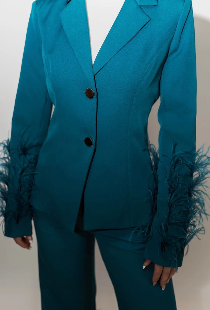 Au Darling Clothing Royal Teal Feather Suit Blazer