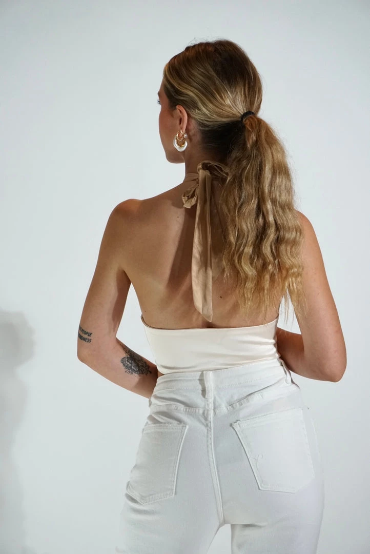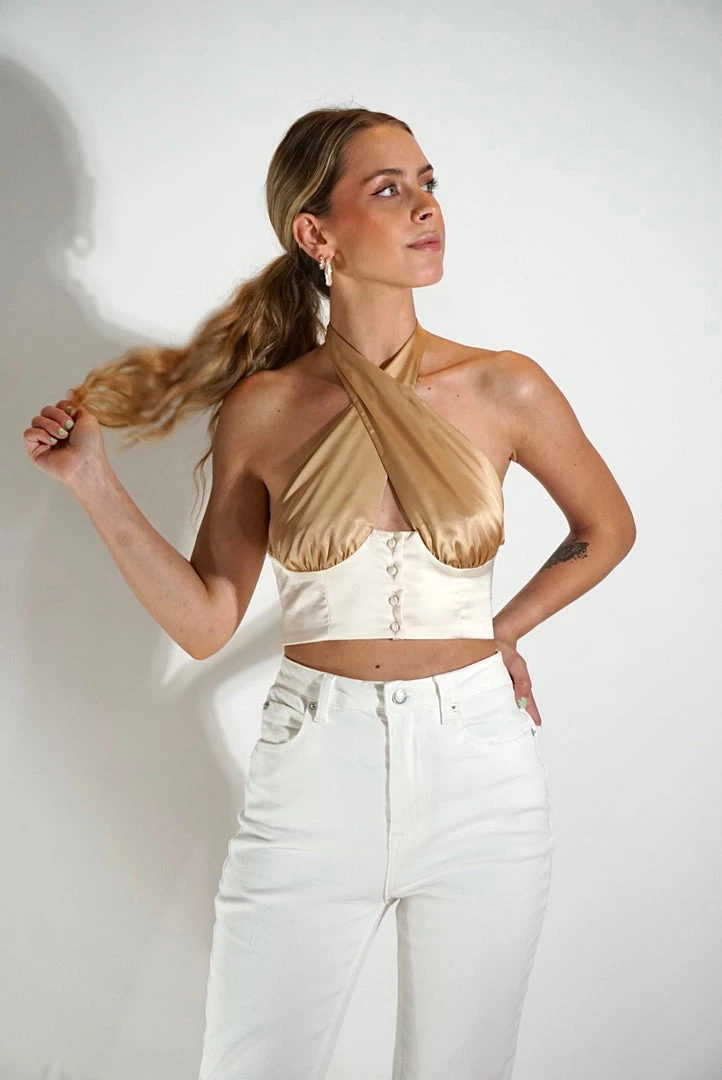 Au Darling Clothing Two Toned Cross Front Halter Top