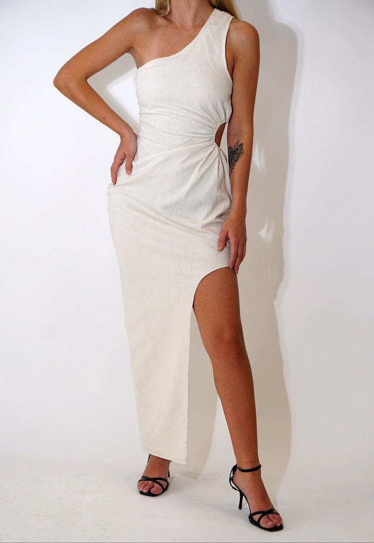 Au Darling Coco One Shoulder Linen Dress Clothing