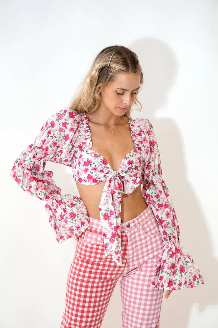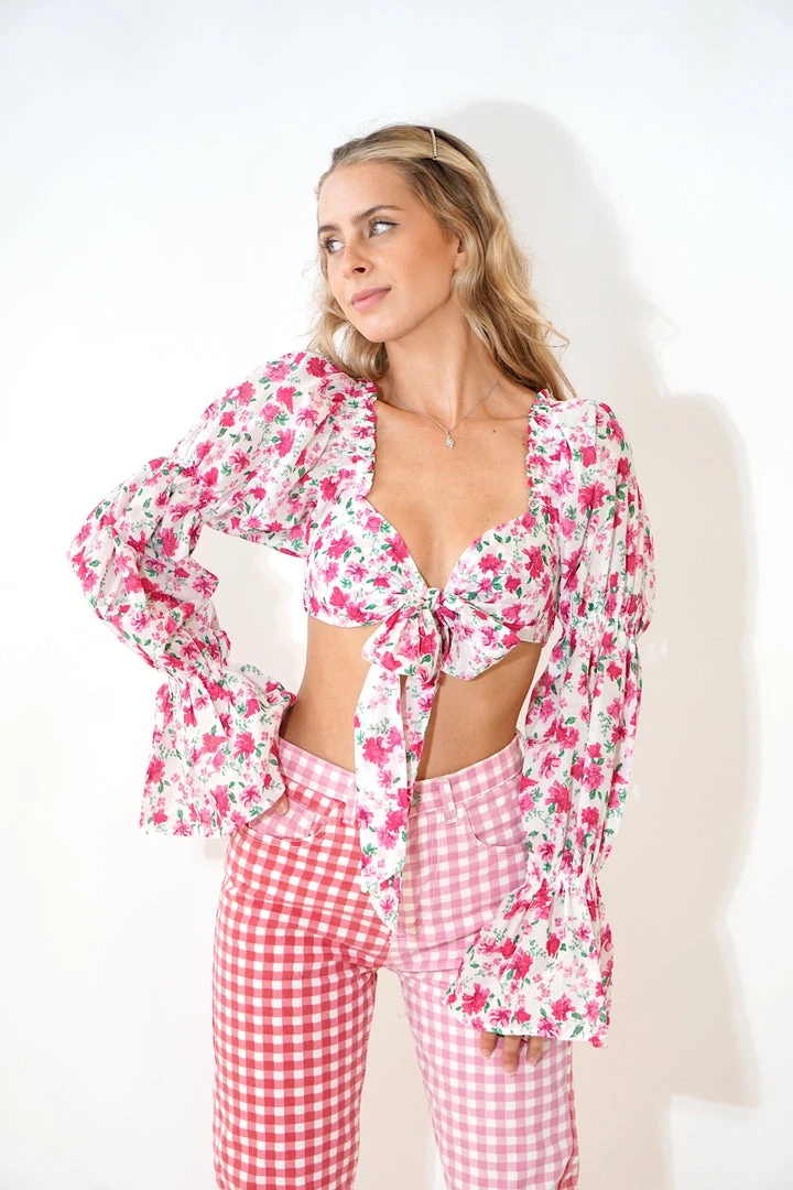 - Floral printed tie front cropped top