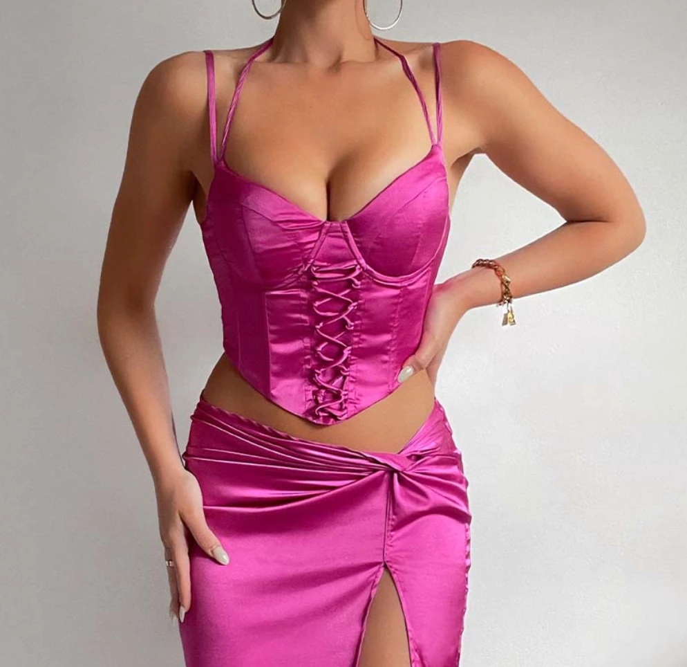 Be the first to review “Au Darling Fuchsia Satin Bustier Top Clothing” Cancel reply