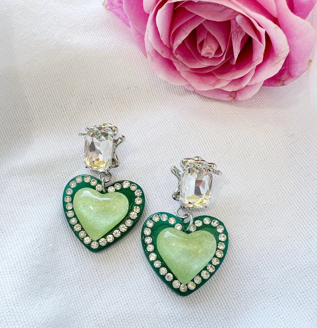 - Double green heart earrings