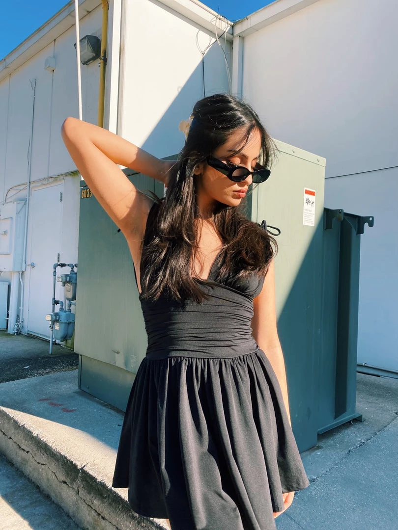 - Deep V cut mini dress