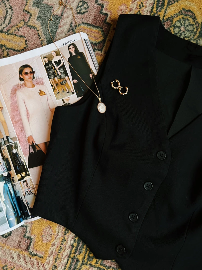 - Black button down vest top