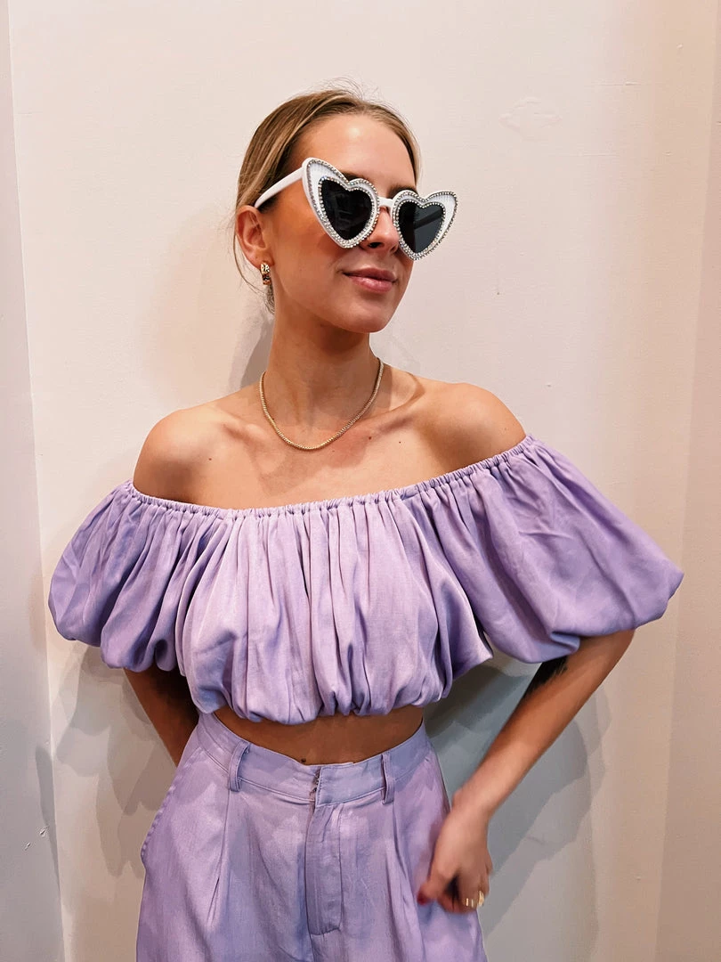 - Lavender bubble crop top