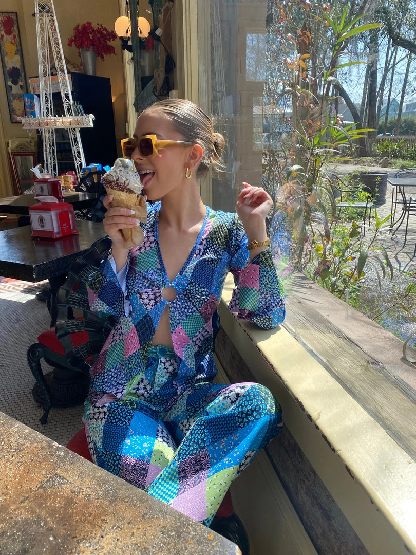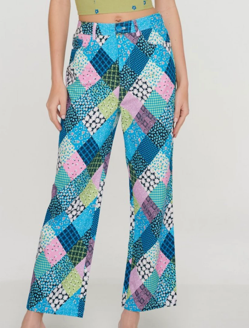 These bold pattern trousers are crafted from a soft, luxurious, recycled fabrics.