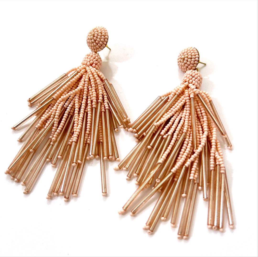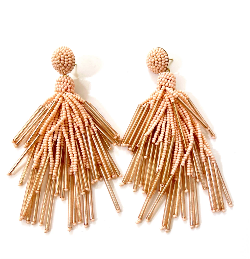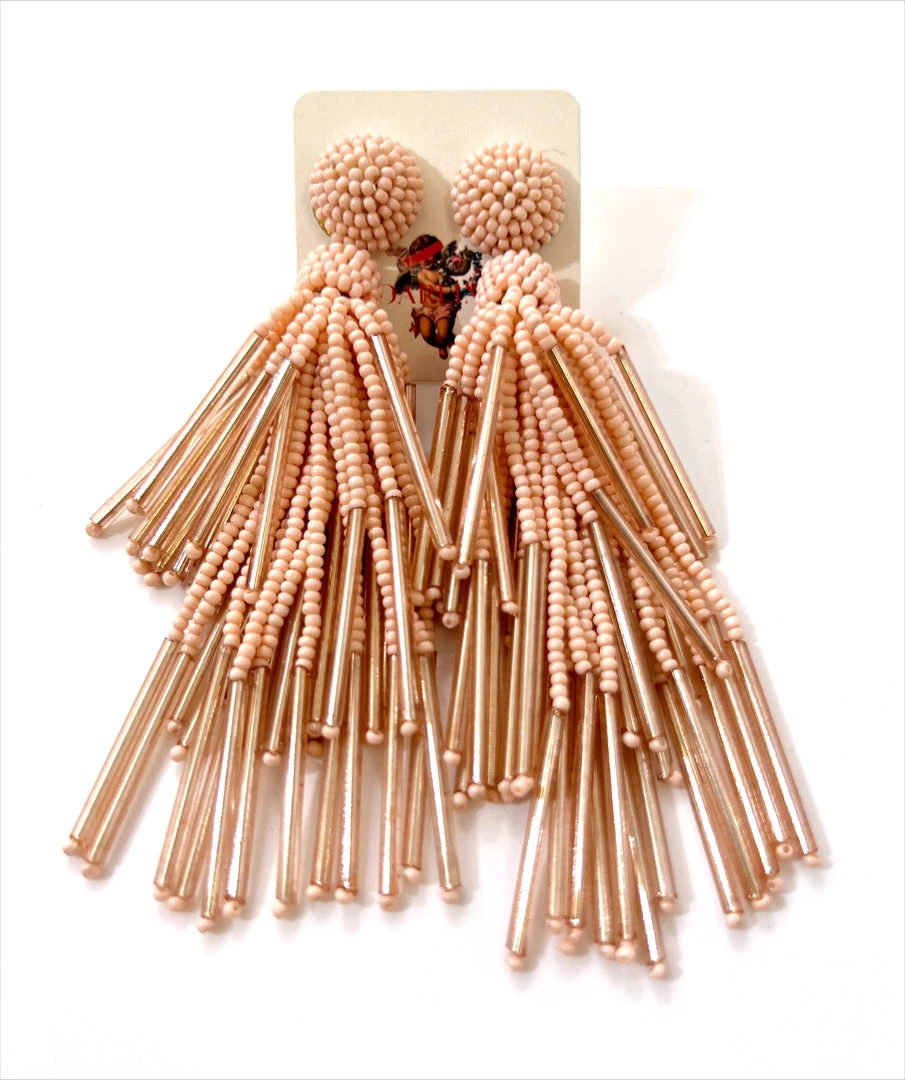 - Peach beaded chandelier fringe earrings