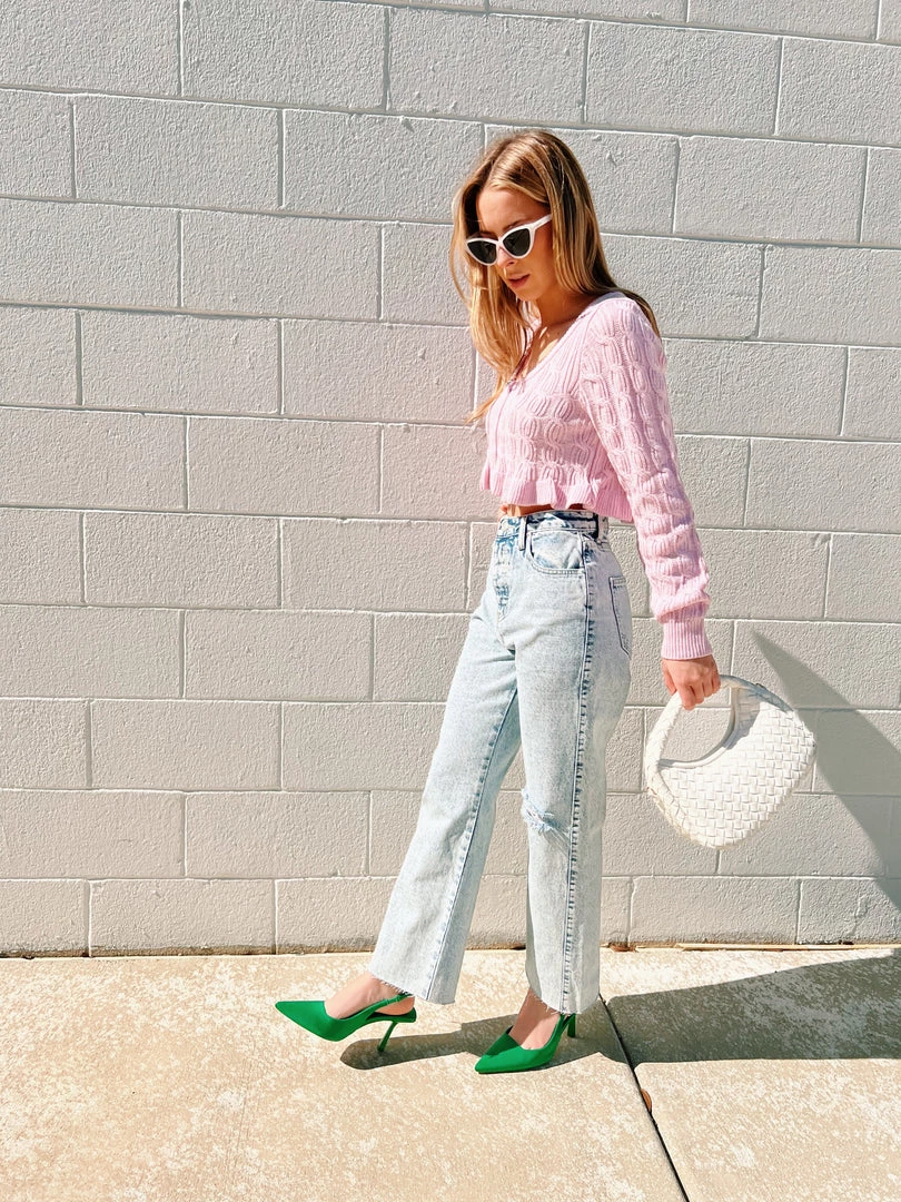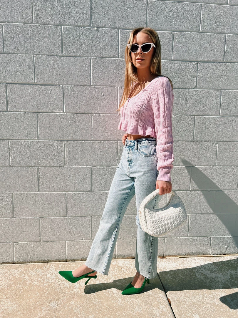 - Baby pink cropped cardigan