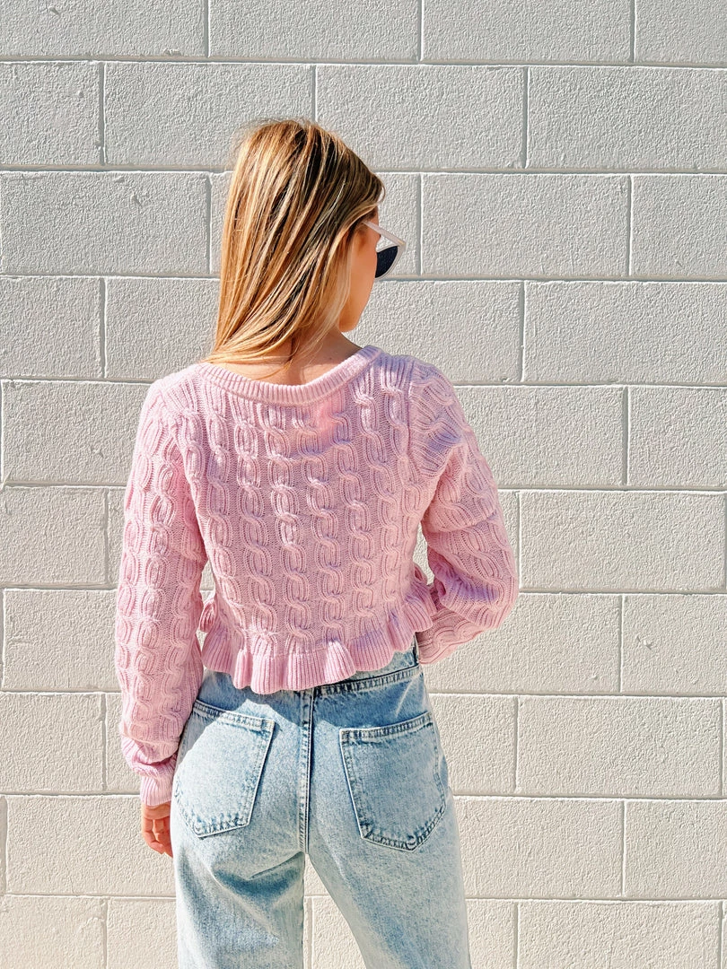 Au Darling Pink Cable Knit Cropped Sweater