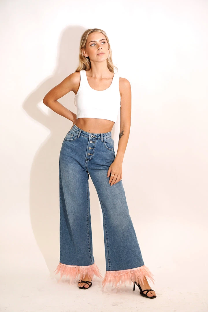 Au Darling Pink Feather Trim Jeans Clothing