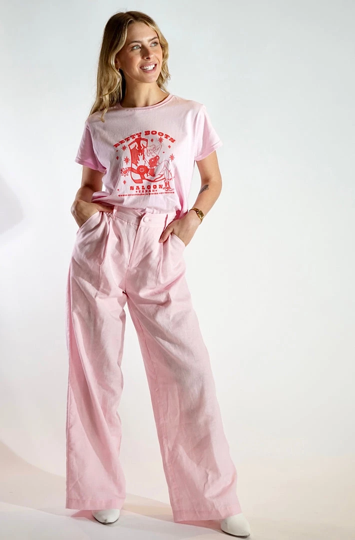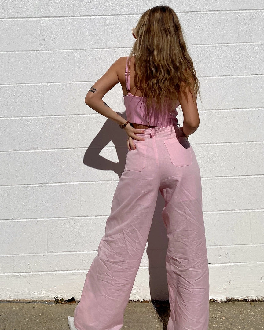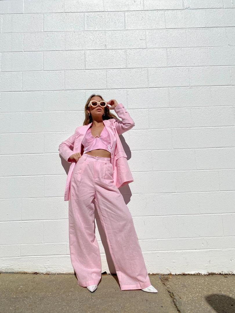 Au Darling Pink Linen Suit Trouser Clothing