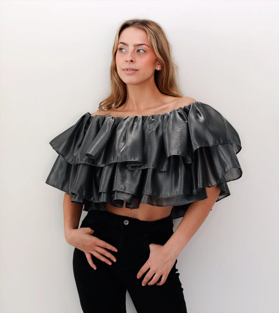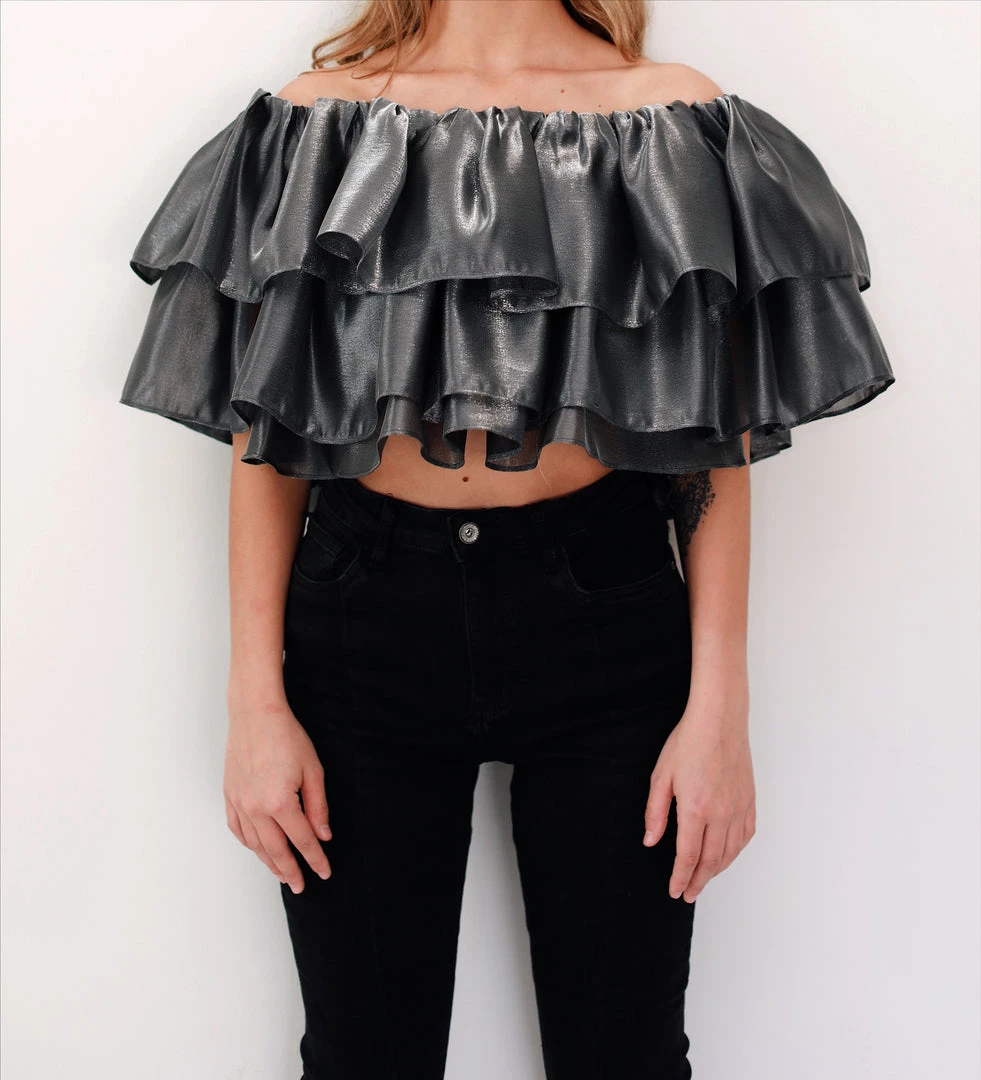 - Silver ruffle crop top