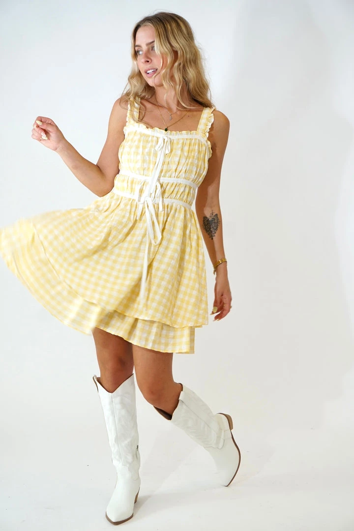 Au Darling Sunshine Gingham Mini Dress