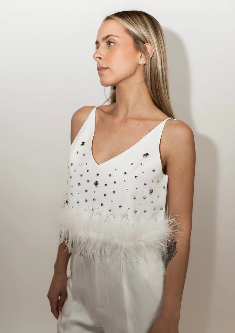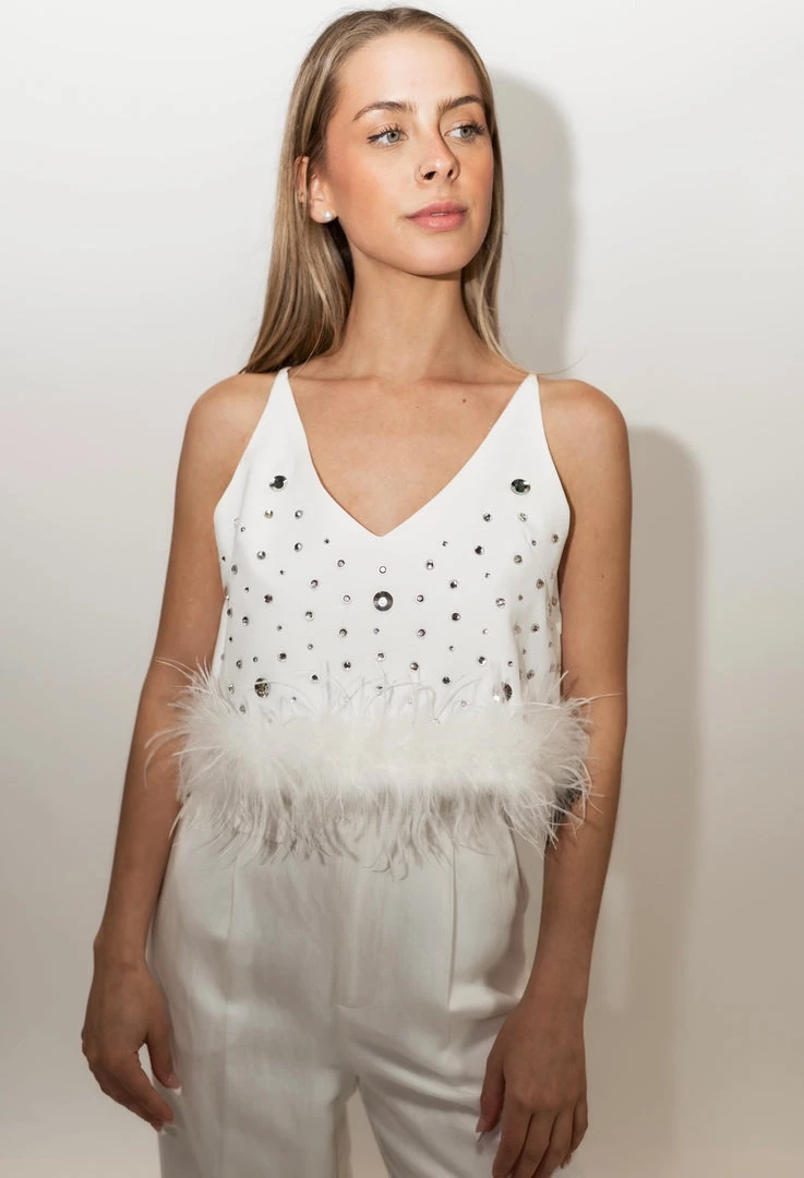 - A fun and fancy white feather top