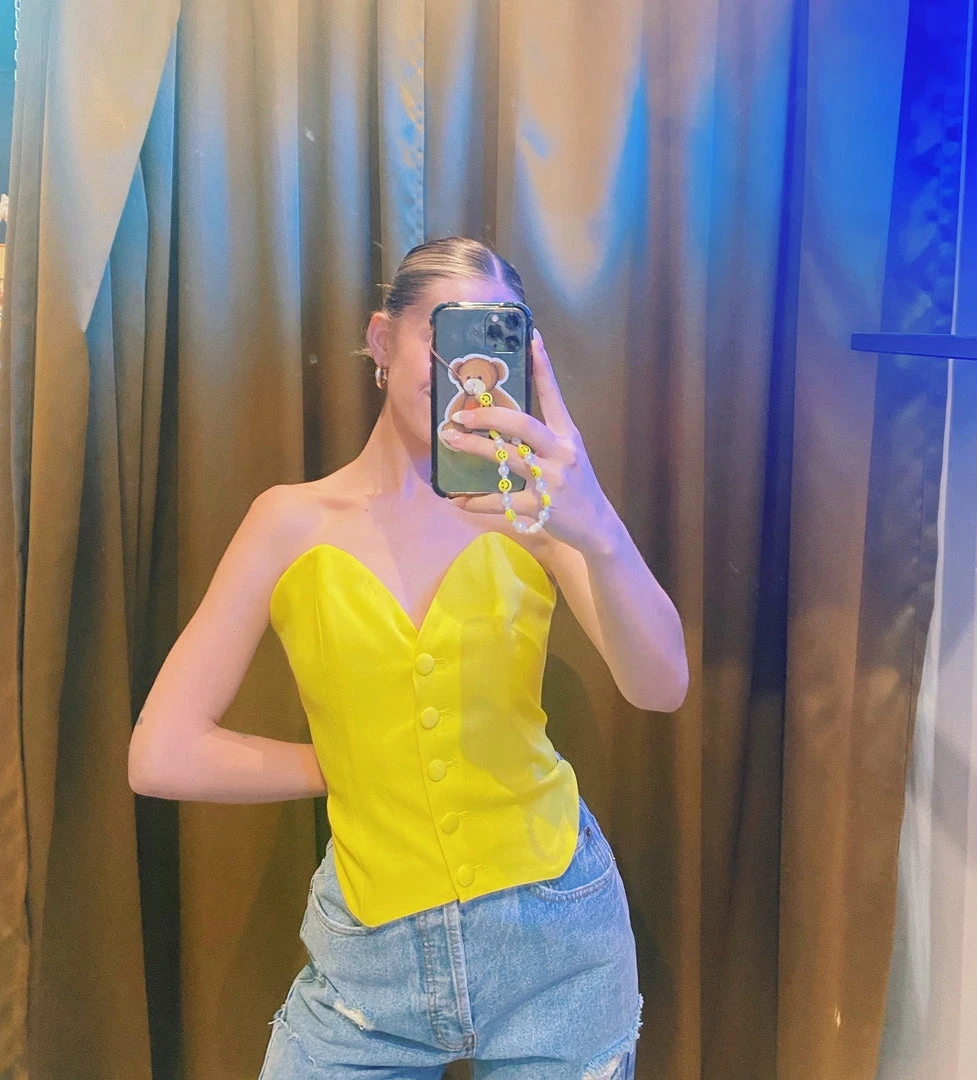 Au Darling Yellow Tube Button Top