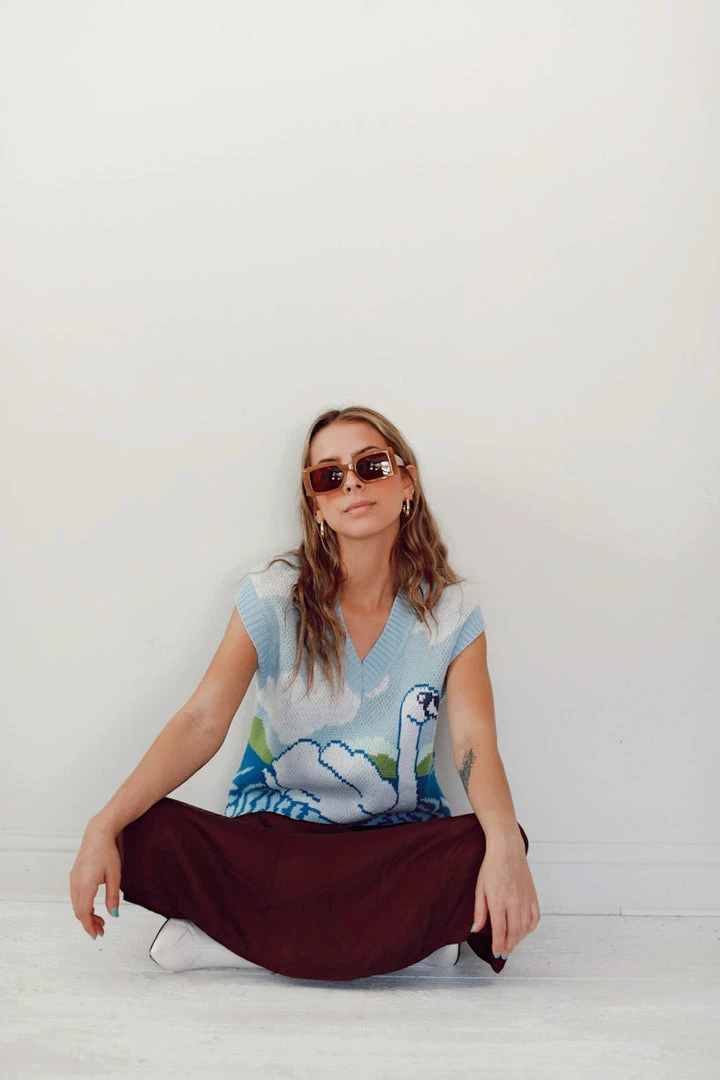 - Chunky retro knitted Ride a white swan vest by House of Sunny!