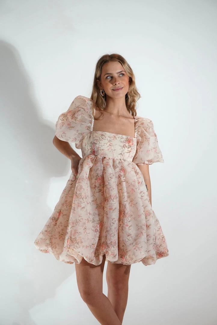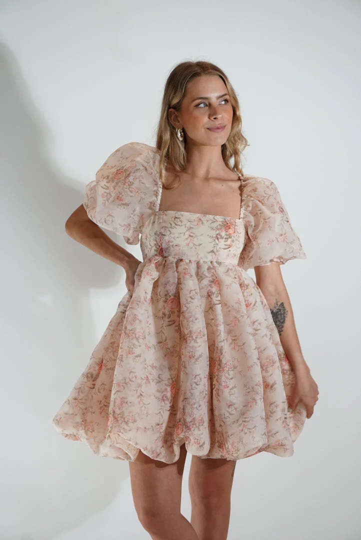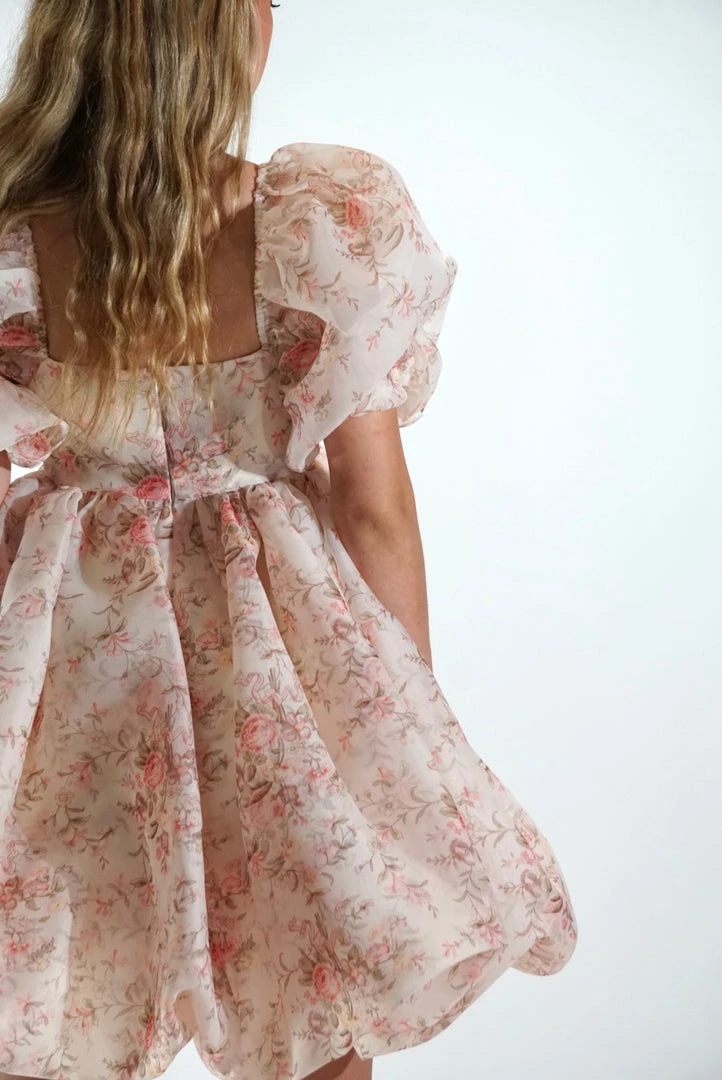 - The bubble puff dress by Selkie in Renaissance Girl floral print