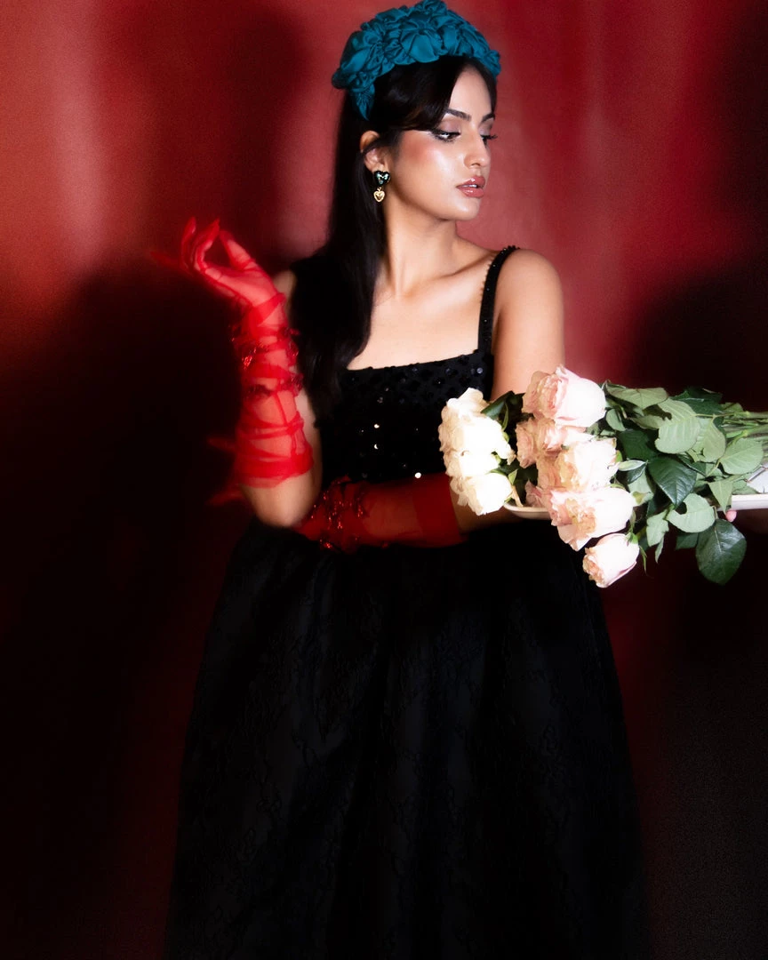 - Straps are detailed with beaded trim and long satin ribbons tie at the back.
